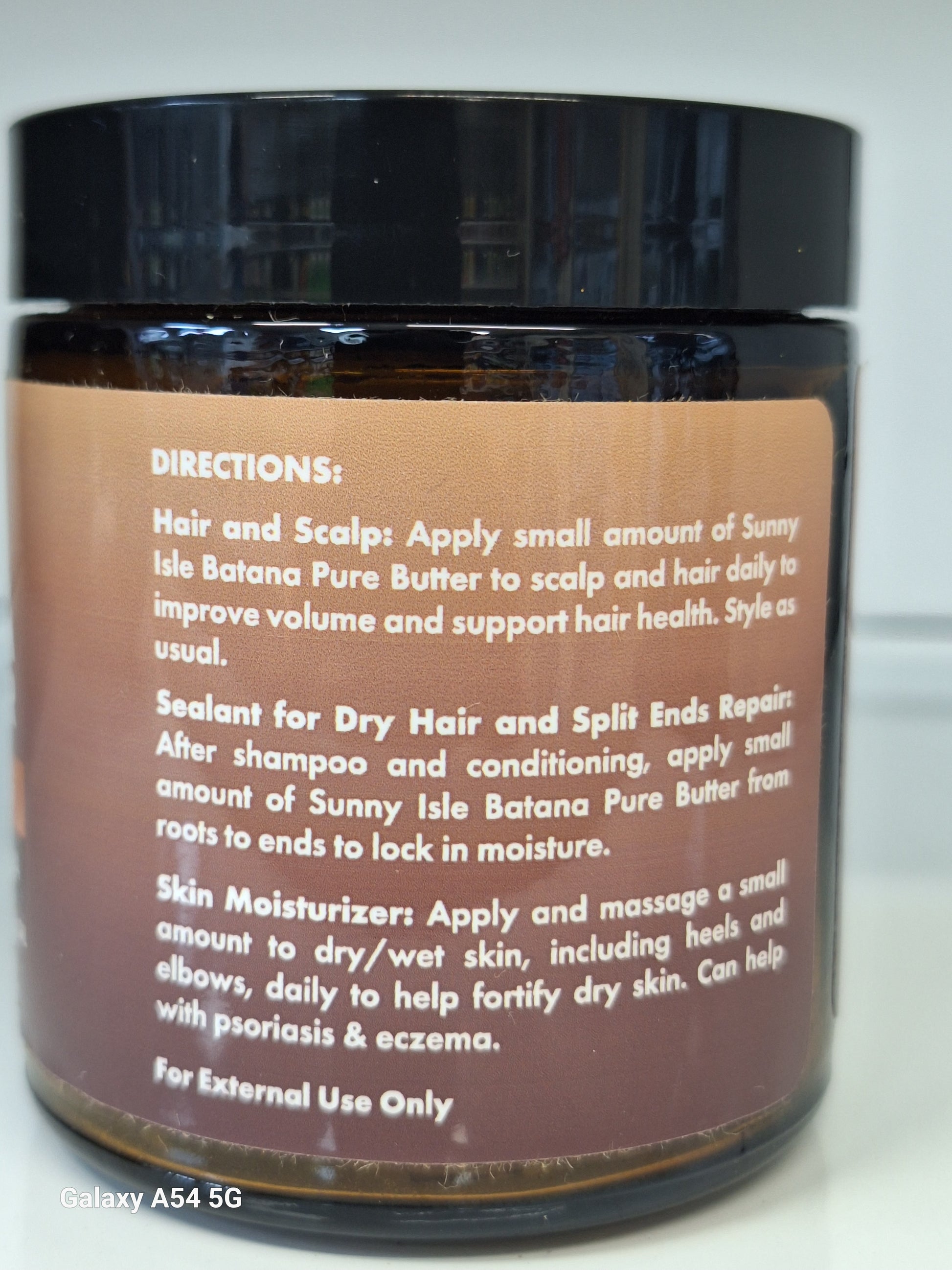 Sunny Isle Batana Pure Butter Anti-Thinning Double Growth Formula Infused with Jamaican Black Castor OilThis product is a solid, ultra-rich hair and skin treatment that combines organic, unrefined Batana Oil with Jamaican Black Castor Oil to promote stronger, thicker, and longer hair.